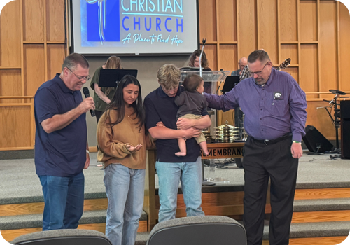 Our services are designed to be welcoming and easy to follow, blending contemporary and traditional worship with a live band each week. We offer mirrored services at 8:30am and 10:45am, with a Sunday School hour at 9:45am. Each service lasts about one hour, giving you time to worship, partake in communion, and hear practical and Bible-based teaching. Dress is casual, so come as you are!